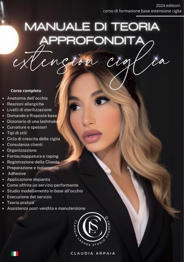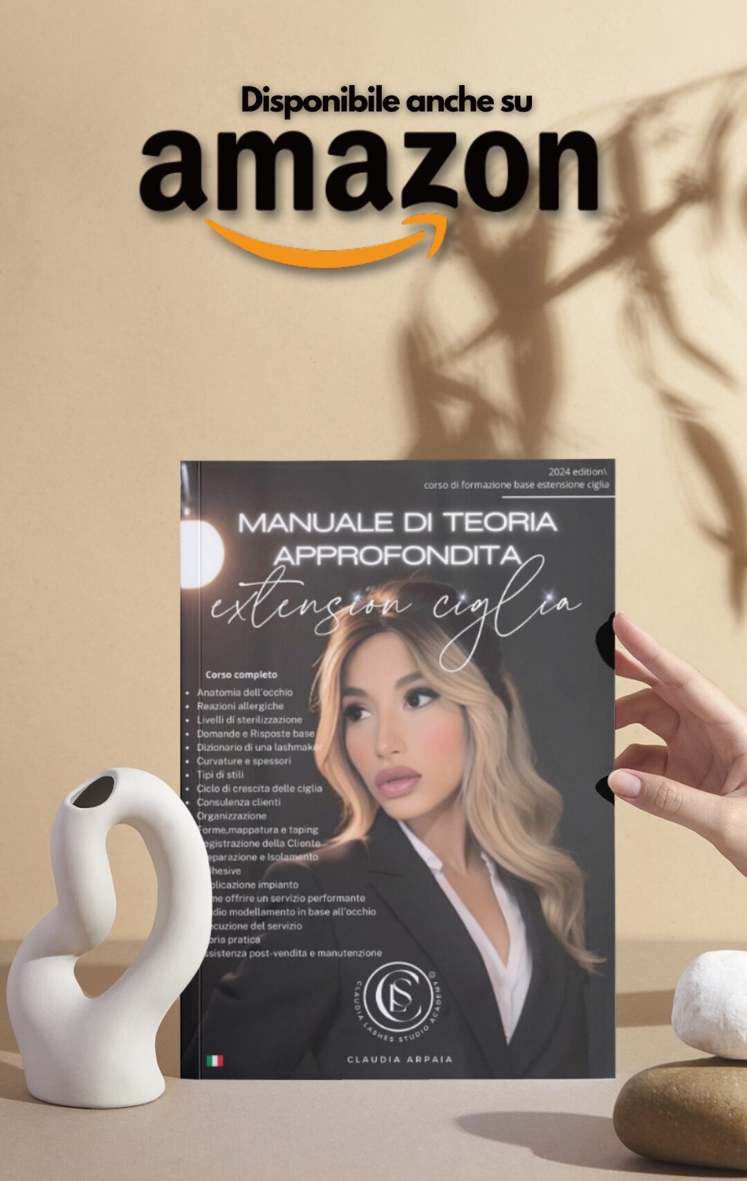 Il Manuale di teoria approfondita di Extension Ciglia ti insegnerà tutti i fondamenti dell’applicazione delle extension ciglia, tra cui la salute e l’anatomia degli occhi, i modelli di crescita delle ciglia, le tecniche di applicazione, la texturizzazione delle ciglia, l’avvio dell’azienda , nonché le istruzioni post-terapia, etc. .